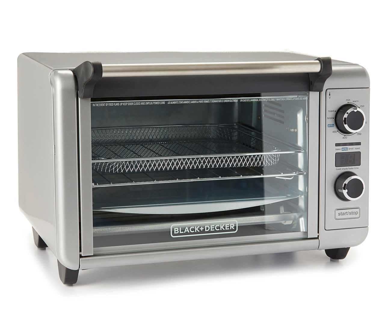 BLACK+DECKER™ Crisp N' Bake Convection Air Fry Oven Toaster oven Black & Decker Crisp 'N Bake Air Fryer Toaster Oven 6-Slice This toaster oven includes an air fry basket, bake/broil pan and rack, and an external crumb tray that slides in and out to make cleanup a. This is deep fried taste without the fat! This oven features air fry technology, which uses high intensity hot air to bake, brown, and crisp your favorite fried foods with little to no oil.. Black & Decker Crisp 'N Bake Air Fryer Toaster Oven 6-Slice.